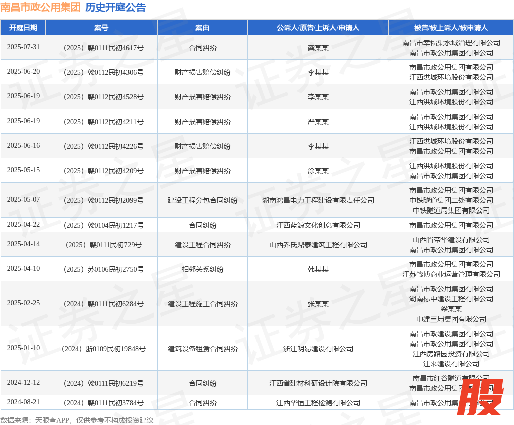 本站消息优配配件助手,根据天眼查APP显示,近日公布了一则南昌市政公用集团有限公司作为被告/被上诉人的开庭公告,详细内容如下: