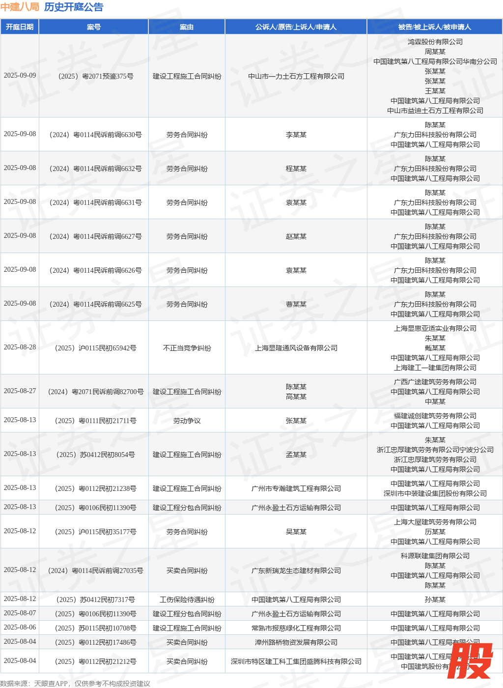 本站消息华融配资华融配资,根据天眼查APP显示,近日公布了一则中国建筑第八工程局有限公司作为被告/被上诉人的开庭公告,详细内容如下: