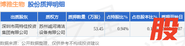 证券之星消息,博雅生物(300294)11月10日公开信息显示,股东深圳市高特佳投资集团有限公司向苏州诚河清洁设备有限公司合计质押53.45万股,占总股本0.11%。质押详情见下表:
